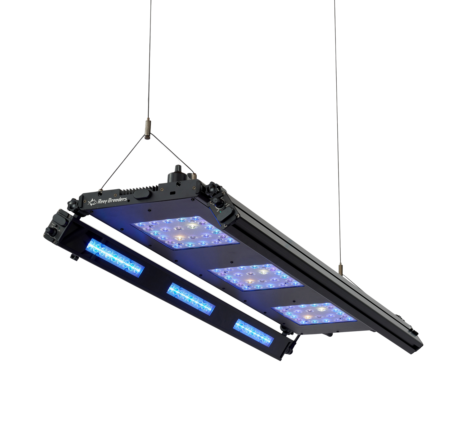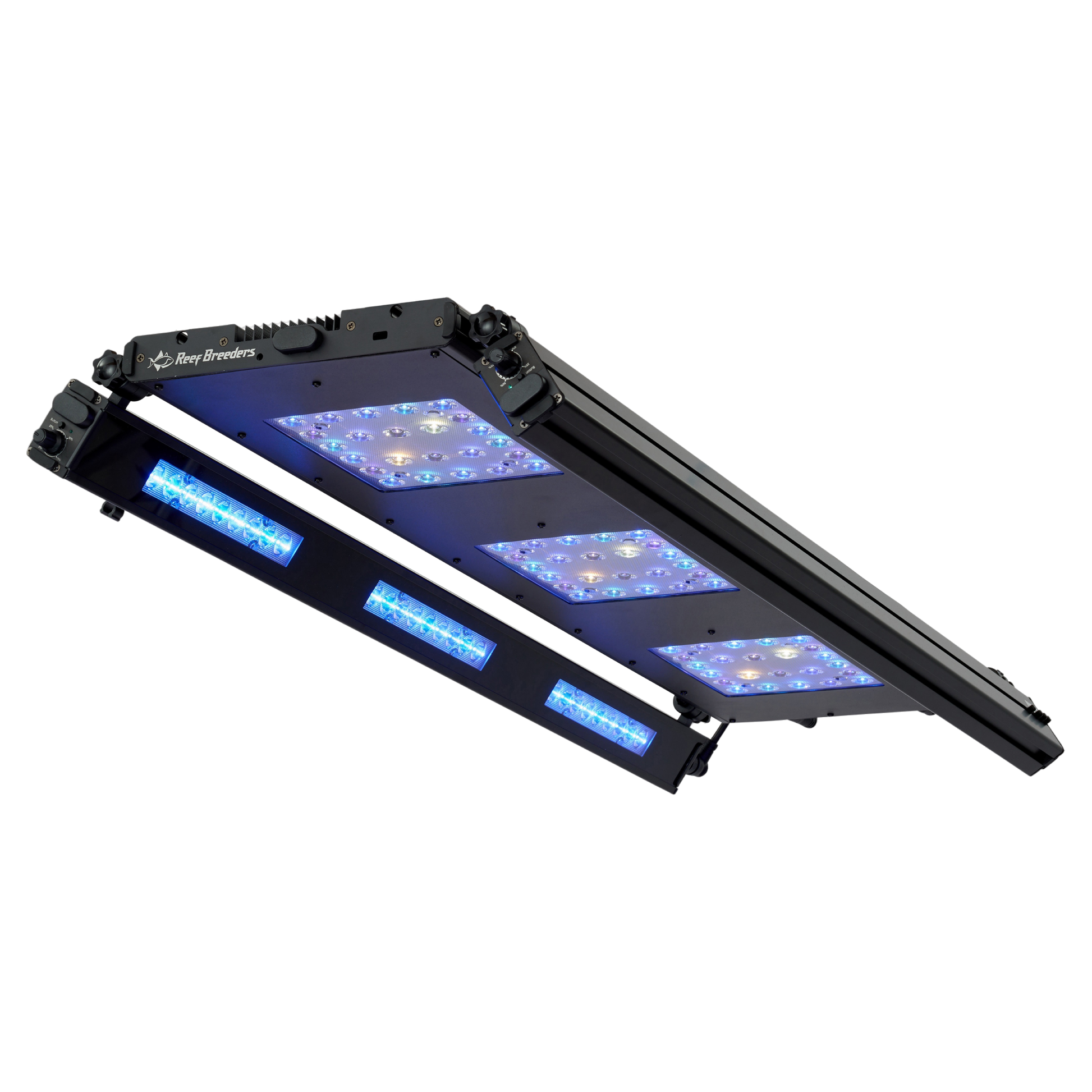 Control is intuitive and adaptable. The ReefBreeders app provides cloud-based access via WiFi, Bluetooth enables direct local adjustments, and the optional Manual Controller offers intuitive on-device control. Users can control power, adjust spectrum settings, and program timed lighting cycles, including smooth sunrise and sunset transitions.